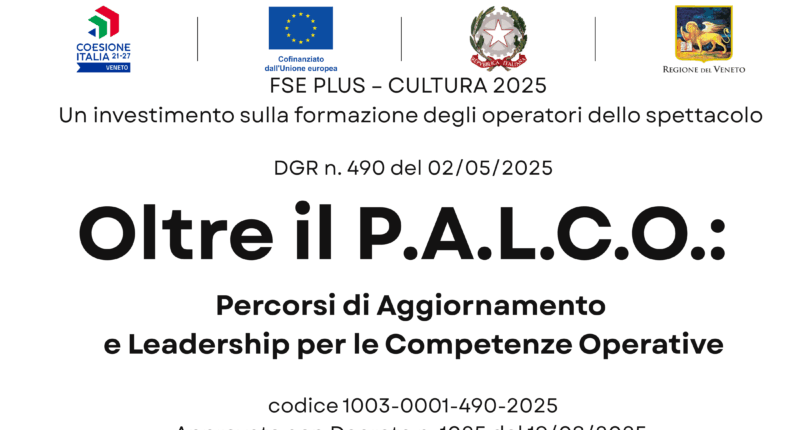 FSE PLUS – CULTURA 2025 – Un investimento sulla formazione degli operatori dello spettacoloDGR n. 490 del 02/05/2025Approvazione progetto con Decreto n. 1025 del 19/08/2025 Progetto “Oltre il P.A.L.C.O.: Percorsi di Aggiornamento e Leadership per le Competenze Operative”codice 1003-0001-490-2025 Punto Confindustria è capofila del progetto “Oltre il P.A.L.C.O.: Percorsi di Aggiornamento e Leadership per le…